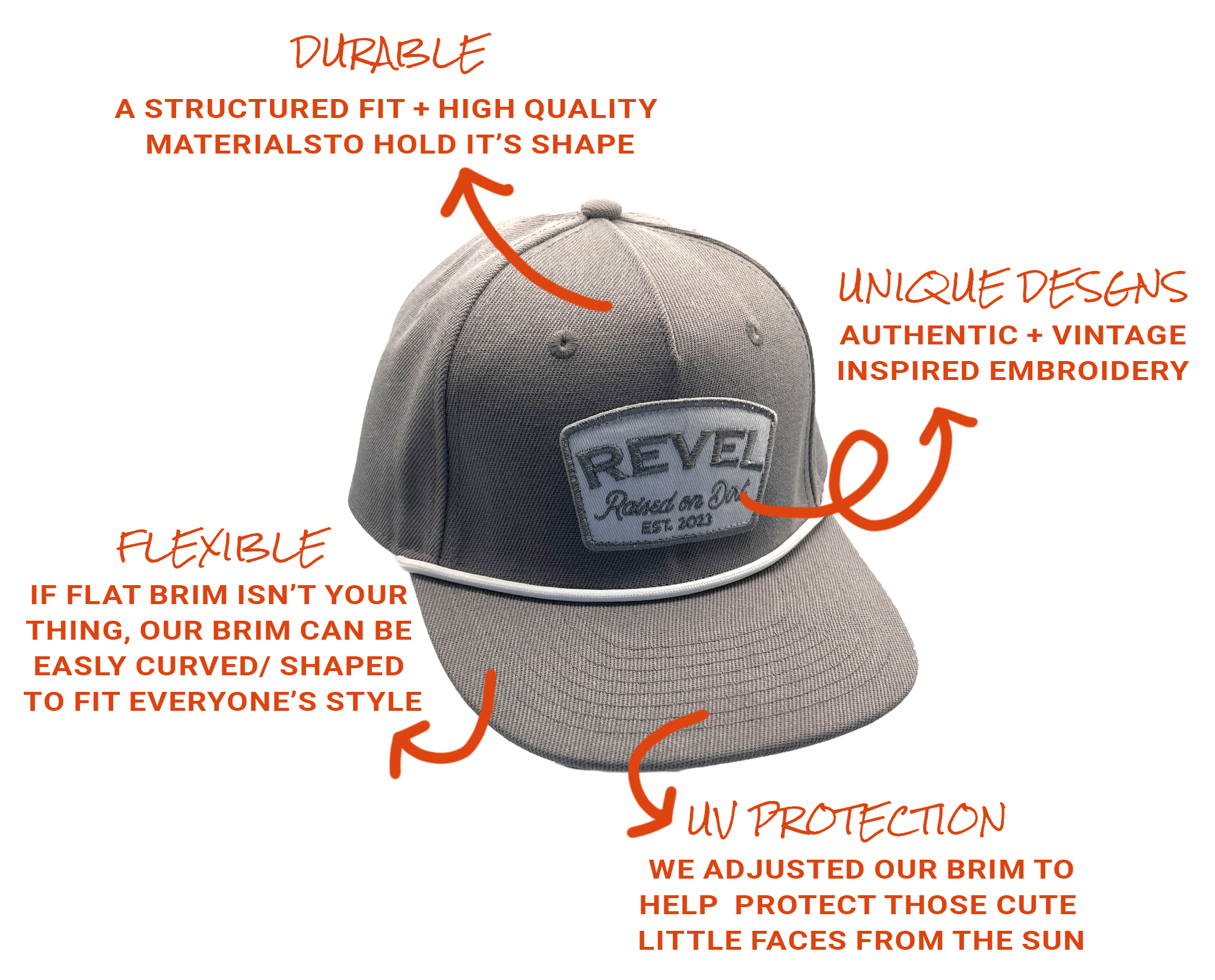 Revel Hat Co. was created for the kids who live loud and play hard. Inspired by our own rowdy crew, we design kids hats with a vintage-inspired edge that captures the spirit of real childhood—messy, adventurous, and full of grit. Our brand is all about raising wild spirits, embracing the chaos, and giving your kids cool, confident style that feels effortlessly their own. Revel is here for every sun-soaked, dirt-covered memory along the way.